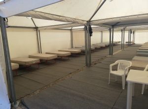 L’ostello, una serie di gazebo con lettini dove passare la notte, bagni, docce, fasciatoio per il cambio dei neonati, già negli anni passati, ha raccolto i favori degli utenti.