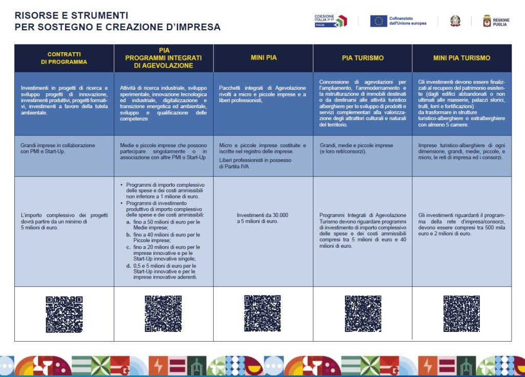 • Mini PIA: Pacchetti integrati di Agevolazione rivolti a micro e piccole imprese e a liberi professionisti;