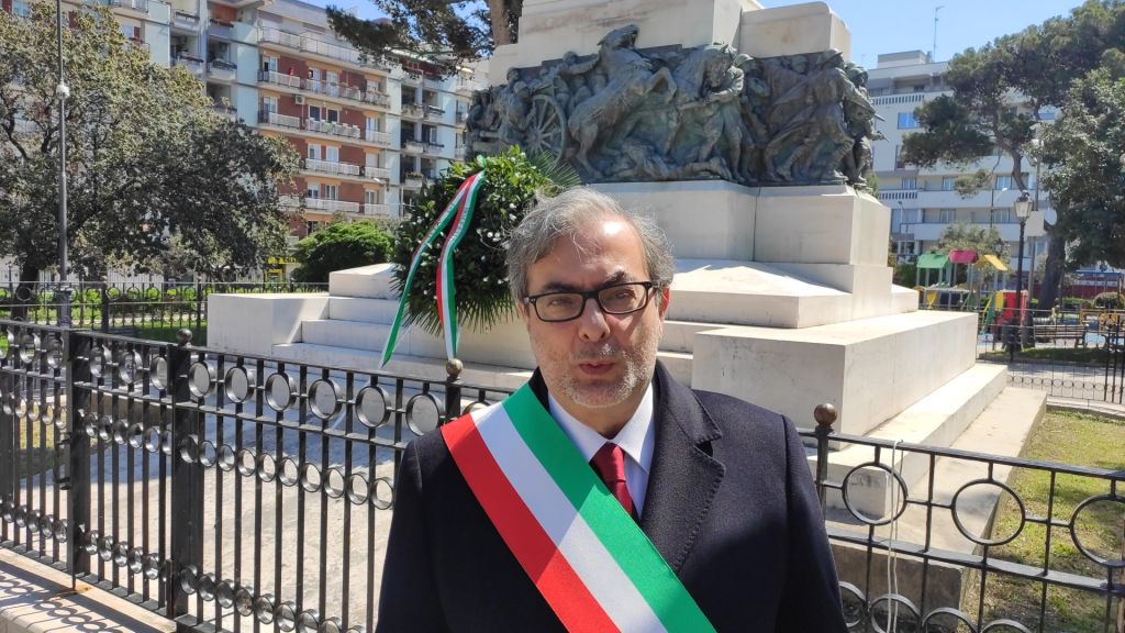 Il sindaco Tommaso Minervini celebra il 25 aprile, festa della liberazione dal nazifascismo, a nome di tutta la cittadinanza. Lo fa in una villa comunale vuota depositando una corona di alloro alla base del monumento dei caduti, al suono della tromba che intona Il silenzio.