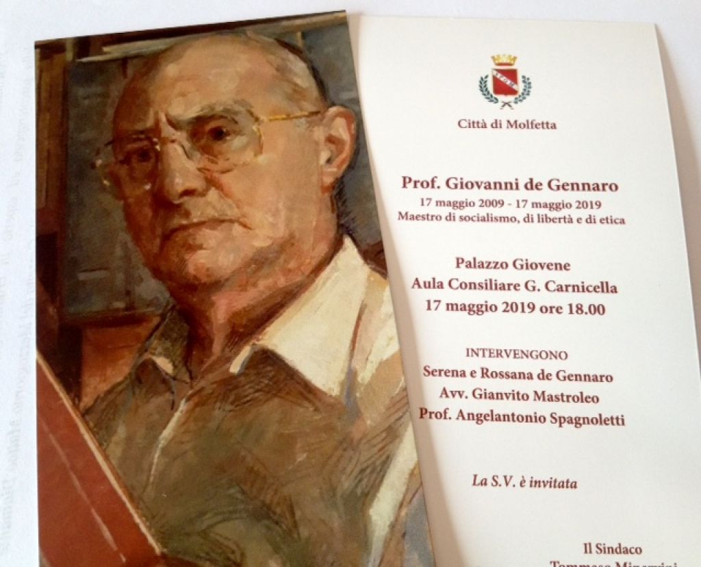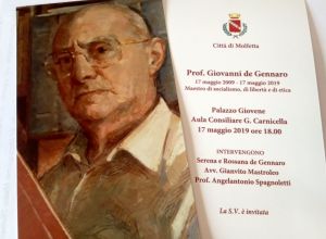 Nel corso dell’incontro, voluto dal sindaco, Tommaso Minervini, e dai familiari, interverranno Serena e Rossana de Gennaro, Gianvito Mastroleo, già presidente della Provincia, il professor Angelantonio Spagnoletti, docente presso l’Università degli studi di Bari.