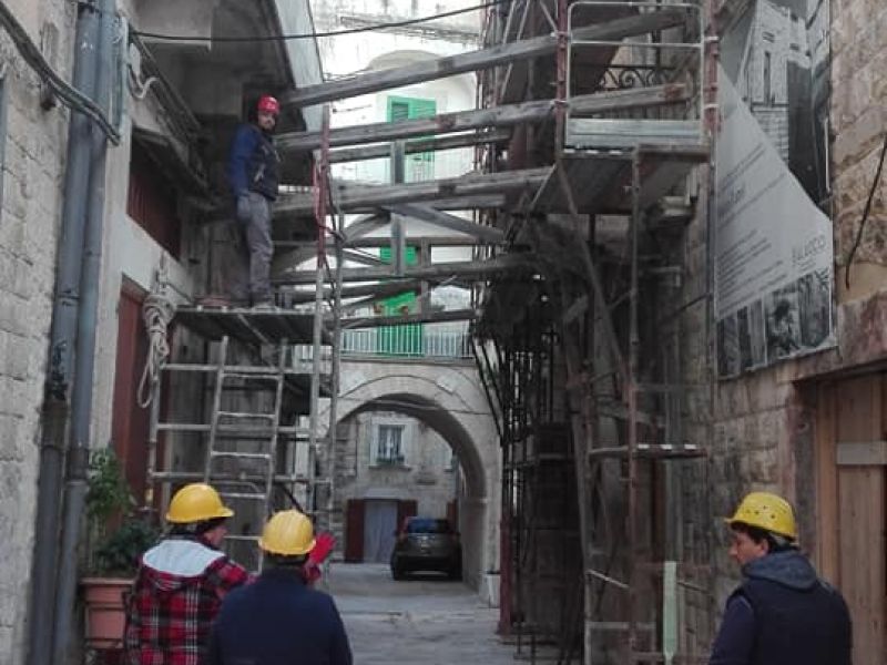 L'idea è quella di creare proprio lì, all'interno di Palazzo Tattoli, una struttura in cui tra spazi espositivi e realtà aumentata, sarà possibile "ascoltare" il racconto della città, ammirare, attraverso un percorso di rampe, i ruderi del palazzo e l'evoluzione urbanistica della città, un museo cittadino da aprire ai turisti, alle scuole. Il progetto definitivo, realizzato d'intesa con la Soprintendenza, sarà ultimato entro i primi mesi del 2019, intanto, questa mattina, dopo cinquant'anni, sono stati rimossi i puntelli (pure sostituiti nel tempo più volte con un aggravio di spese per le casse comunali), che tenevano in piedi la struttura.