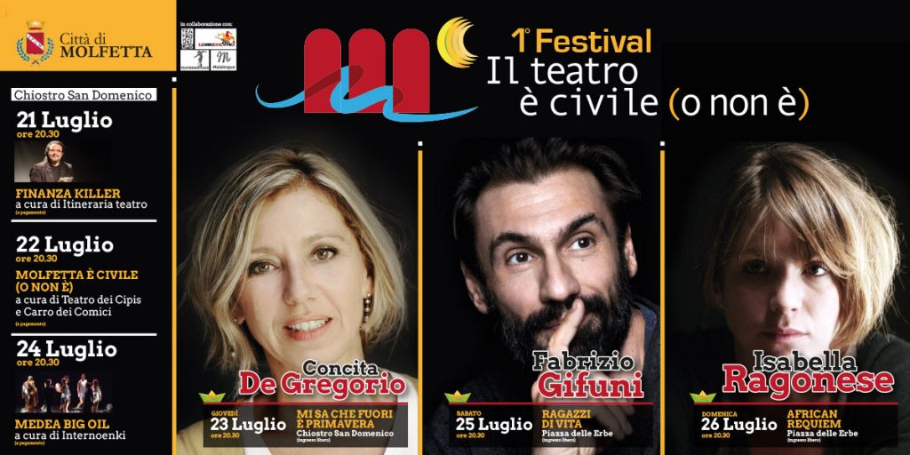 Gli spettacoli del 21, 22, 24 luglio saranno preceduti alle ore 18 da una tavola rotonda con gli autori su Crisi finanziaria, emigrazione giovanile e trivellazioni petrolifere.