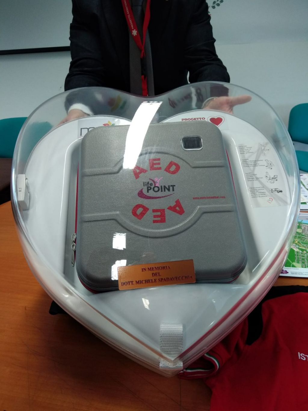 «Cuore e memoria. Oggi vogliamo ricordare – spiega il sindaco Tommaso Minervini – il dottor Michele Spadavecchia, pediatra sempre impegnato nel mondo del volontariato e del sociale. Il defibrillatore della sede di Lama Scotella è a lui dedicato».