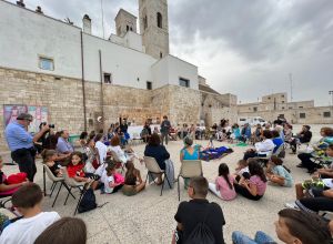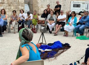 A Cala Sant’Andrea il filatoio di Comunità ha coinvolto uomini e donne di età diversa, nella condivsione delle tradizioni orali legate alla fiaba e al mare. Presenti l’assessore alla cultura, Giacomo Rossiello, e i rappresentanti della Cooperativa FeArt, del Teatro dei Cipis, delle Associazioni Auser, Archeoclub, Il popolo granchio, Pugliautentica, Masci, Fabulanova, che hanno salutato i presenti raccontando la tradizione attraverso la danza, e la partecipazione di Giovannangelo De Gennaro e Corrado La Grasta, che ha ripropsto due fiabe Affari di cuore e Ceneredde, una delle 132 versioni di Cenerentola nel mondo, scritte da Saverio Lasorsa.