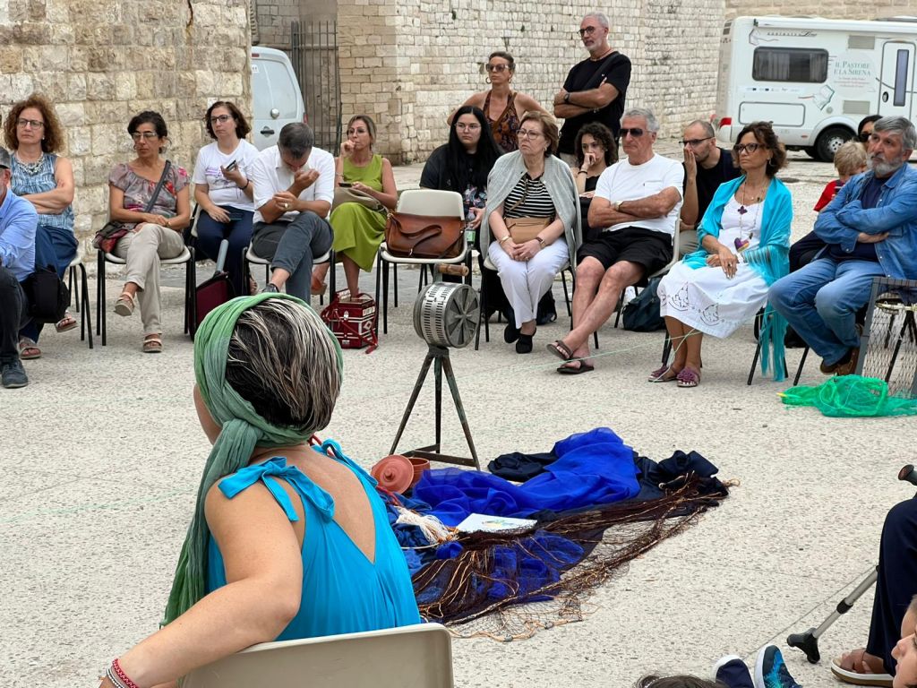 Un panno azzurro, a significare le onde del mare, la rete di un pescatore, una piantina di basilico, una pentola in coccio, una antica sirena, un secchio in latta e il libro di fiabe di Saverio La Sorsa. Tutto intorno il pubblico, gli organizzatori, i protagonisti dell’iniziativa. Ha fatto tappa a Molfetta la “Carovana dei filatoi delle fiabe e del Mito” progetto che punta al recupero del patrimonio immateriale delle tradizioni popolari.