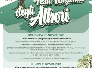 Nello specifico, domenica 20, per la visita all’ulivo di Antignano (con prenotazione obbligatoria presso l’Info point in Via Piazza, tel. 3519869433) e navetta gratuita messa a disposizione dell’Mtm, ci si potrà avvalere del supporto scientifico delle associazioni Terrae e Legambiente, dell’animazione a cura del Teatro dei Cipis e del Carro dei Comici e l’assistenza del SerMolfetta; lunedì 21, ai bimbi delle scuole, l’Associazione Terrae proporrà attività inerenti il rispetto delle specie arboree e l’adozione di comportamenti quotidiani ecosostenibili, il Teatro dei Cipis e il Carro dei Comici con l’assisteza del SerMolfetta proporranno ai bimbi esperienze ludiche. Nel pomeriggio, presso il centro Antiviolenza in Via Rosa Luxemburg, ci sarà un momento di lettura a cura delle associazioni Antiqua Mater e Terrae.