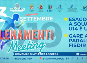 Un esagonale a squadre per i giovani tesserati Fidal, gare di velocità, mezzofondo, lanci e salti per gli atleti paralimpici FISDIR convocati in nazionale. Venerdì 13 settembre, a partire dalle 17, lo stadio Paolo Poli ospita la prima edizione di Allenamenti Meeting, giovanile di atletica leggera. In programma ci sono un esagonale a squadre Under 14 e Under 16 e gare di atleti paralimpici FISDIR.