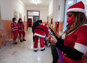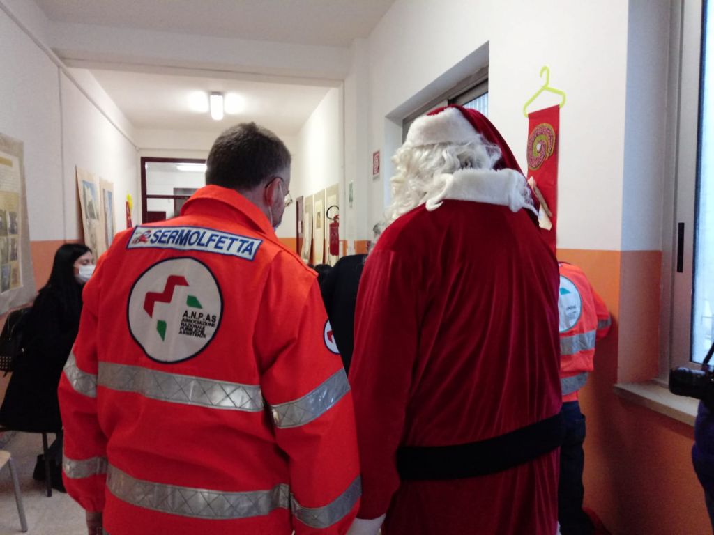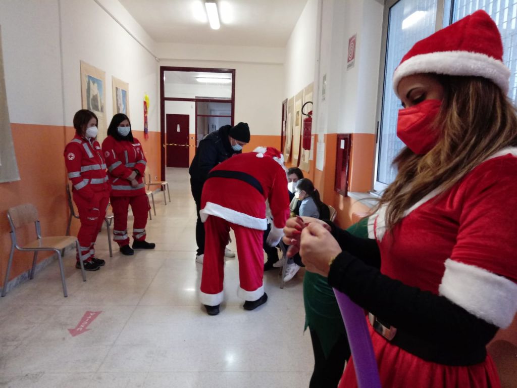 Presente oltre ai vertici dell’hub, il dottor Gaetano Petitti e i suoi collaboratori, il personale di Croce Rossa e del SerMolfetta che ha provveduto anche all’animazione, e i volontari Covid scout. A tutti i bimbi corsaggiosi Babbo Natale in persona ha consegnato caramelle e cioccolate aiutato dai suoi elfi che hanno anche realizzato e donato simpatici palloncini.