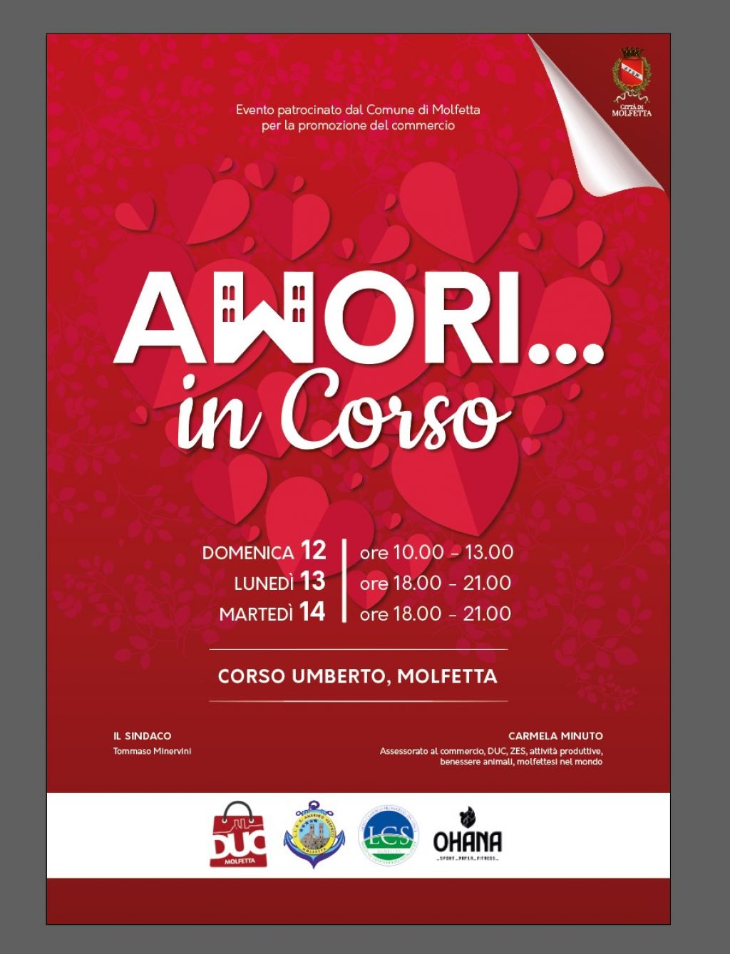 L’Amministrazione comunale, tramite l’Assessore al commercio, Carmela Minuto, e il DUC (Distretto Urbano del commercio di Molfetta) ha promosso una serie di iniziative ed eventi legati all’imminente festa di San Valentino 2023 denominata “Amori… in corso”.