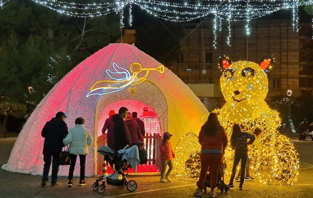 D’intesa con il Sindaco, Tommaso Minervini, l’assessore al commercio Carmela Minuto ha pensato di vestire di luci anche la villa comunale dove, al centro, c’è anche una installazione, con tanto di pinguini e orsi, perché con la fantasia, polo nord e polo sud si incontrano, un posto magico per i più piccoli attratti anche da un enome pupazzo di neve luminoso posizìonato all’esterno.