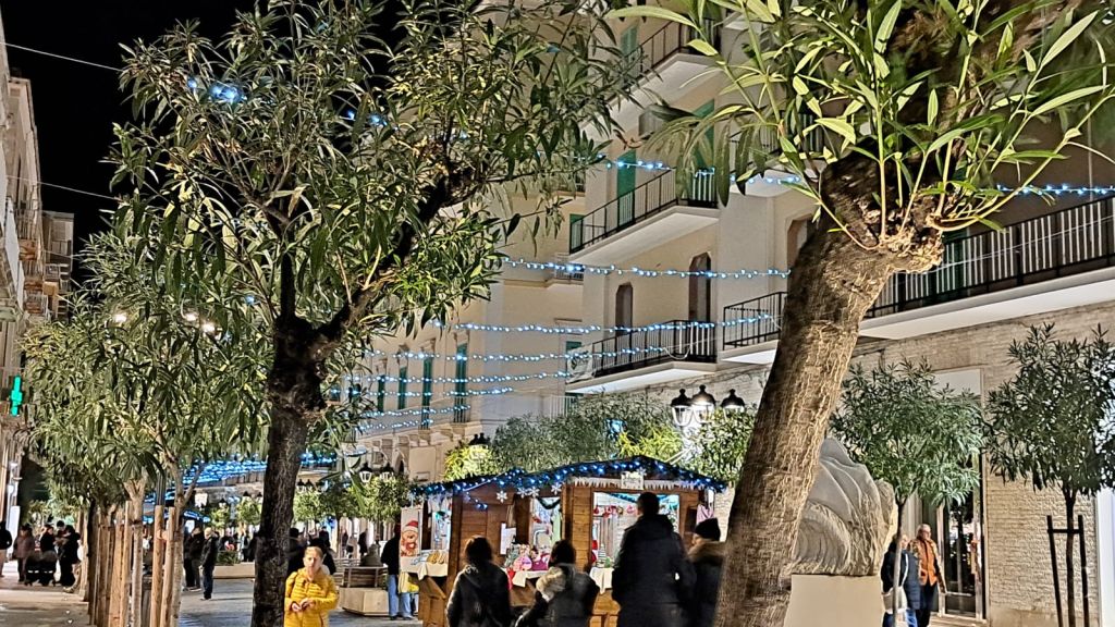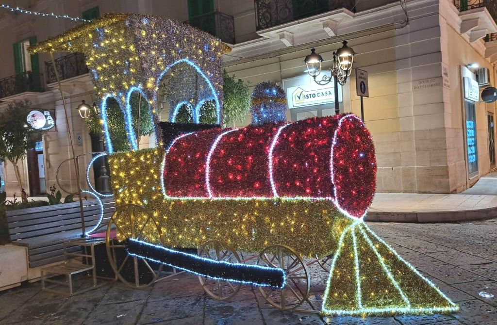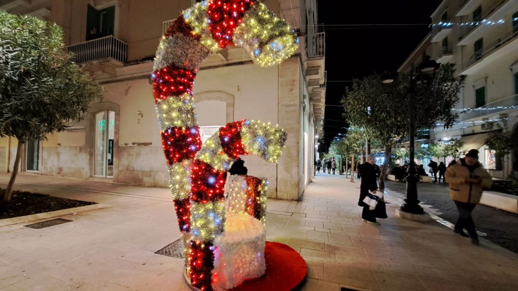 La locomotiva su Corso Umberto, a poche decine di metri dalla stazione ferroviaria, più in là un enorme cappello di Babbo Natale, bastoncini colorati in formato maxi, tutte location simpatiche per foto ricordo, poi casette in legno e musica natalizia a fare compagnia, il tutto sotto un manto di luci. Lo shopping in centro a Molfetta, con la seconda edizione de “Il Natale delle Meraviglie”, è una esperienza immersiva.