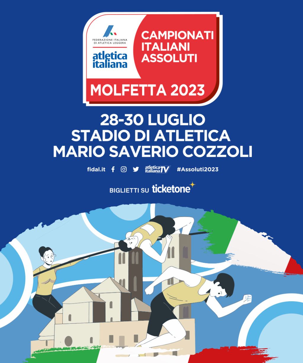 TV E STREAMING - I Campionati Italiani Assoluti di Molfetta godranno di ampia copertura televisiva in diretta nelle giornate di sabato 29 e domenica 30 luglio. La massima rassegna tricolore, in programma allo stadio Cozzoli della città pugliese, edizione n. 113, potrà essere seguita in tv su RaiSport sabato dalle 19.30 alle 22 e domenica dalle 19.30 alle 22. Prevista anche la diretta streaming su RaiPlay negli stessi orari. Le altre gare del sabato e della domenica saranno trasmesse in streaming su www.atletica.tv.