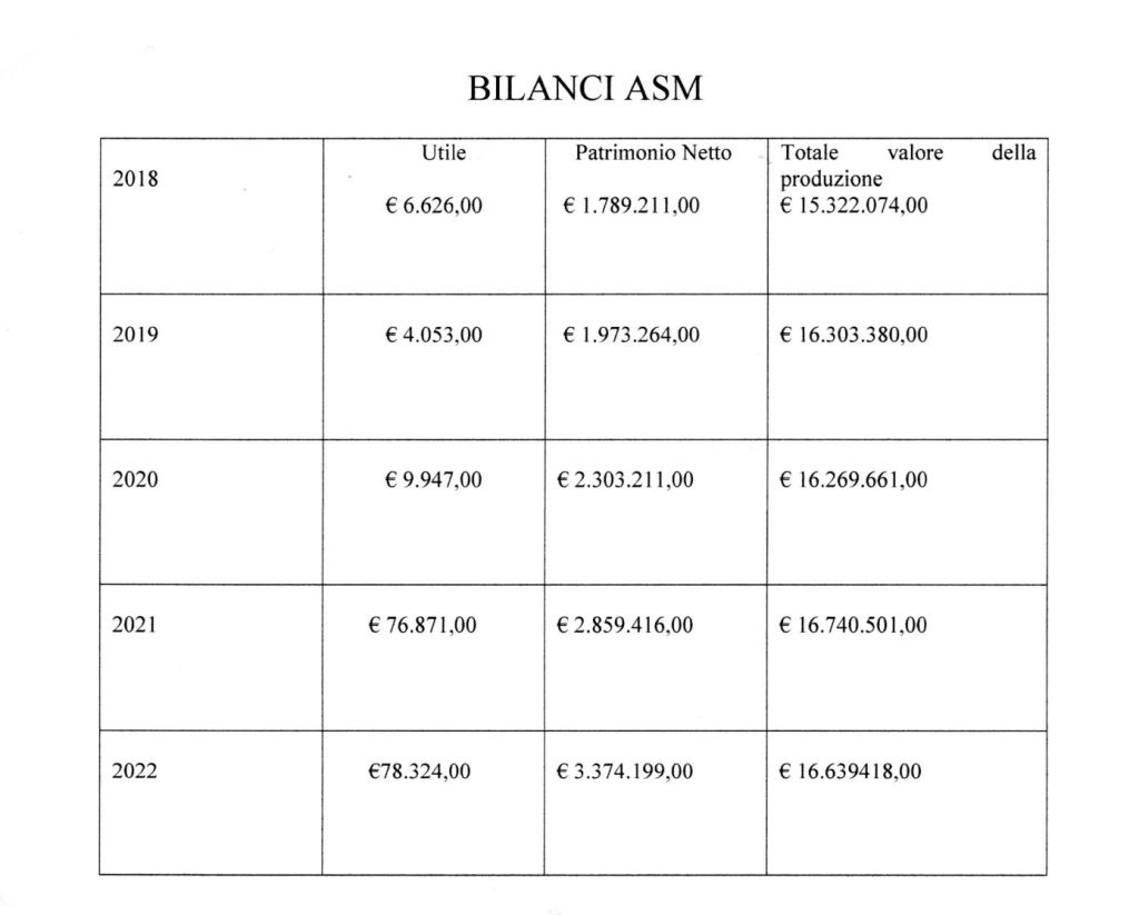 Con questi dati approvati dal Collegio Revisori si consolida l'ASM come l'azienda più importanre del circondario con un compito difficile in tempi difficili. Sono il frutto di chi lavora responsabilmente.