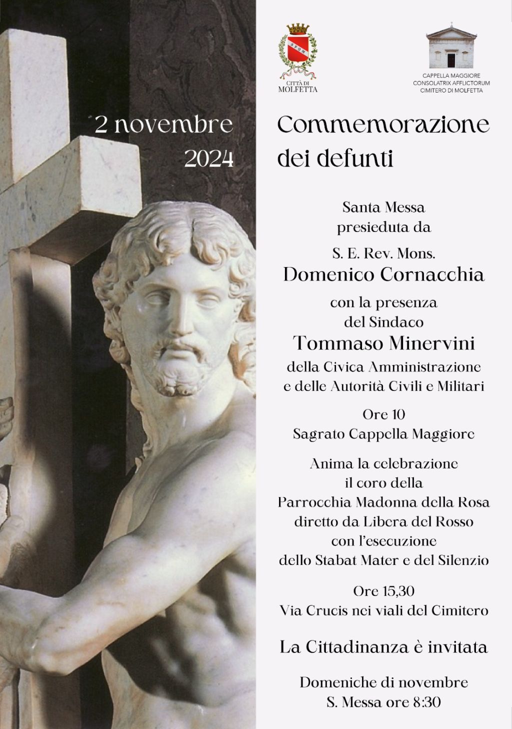 Alle ore 10, sul Sagrato della Cappella maggiore del Cimitero, il vescovo della Diocesi, monsignor Domenico Cornacchia, officerà la Santa Messa.