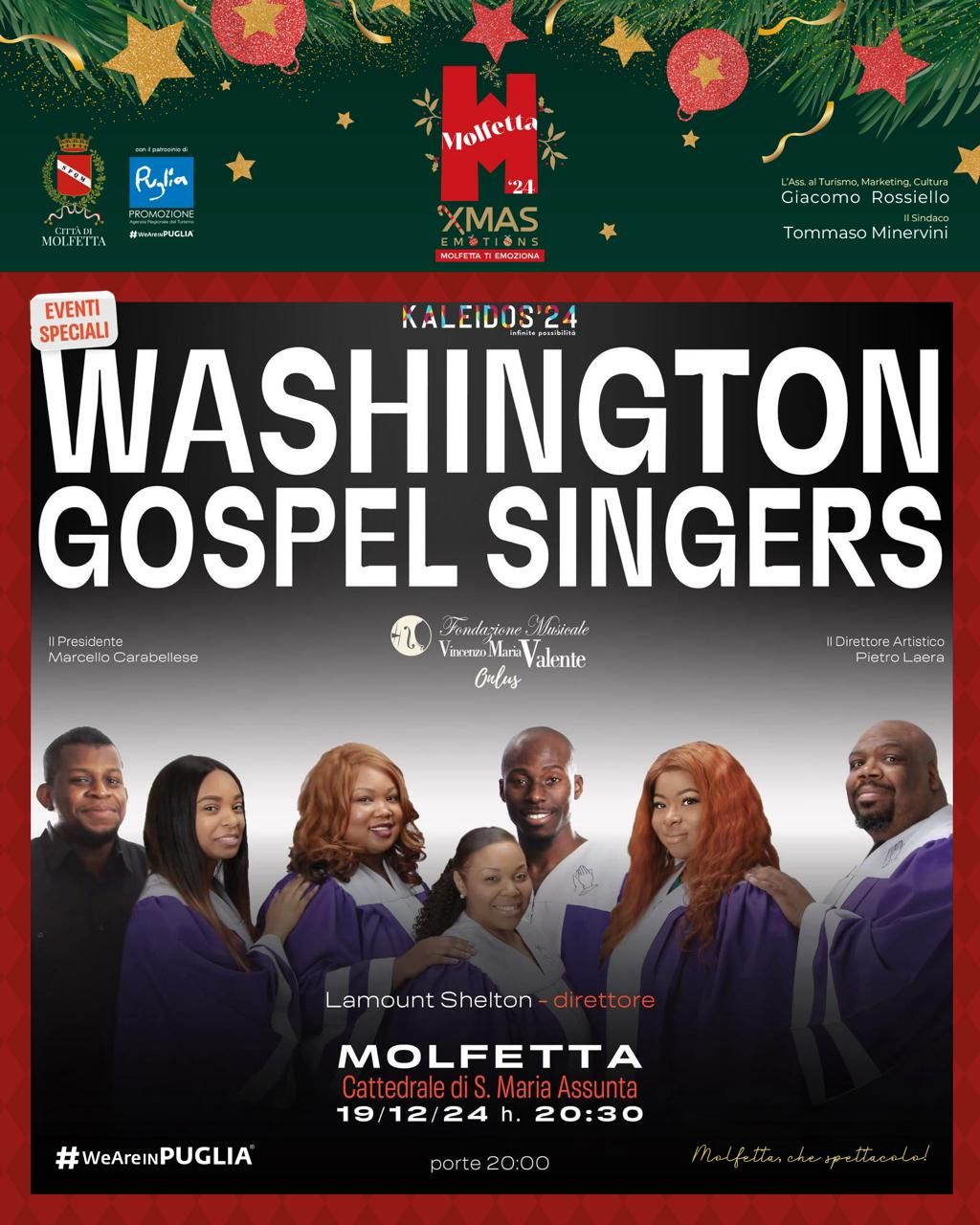 Appuntamento con la musica Gospel, domani, giovedì 19 dicembre, alle 20.30, nella Cattedrale di Molfetta con i Washington Gospel Singers, evento proposto dalla Fondazione Valente nell’ambito della Rassegna «Molfetta Xmas Emotions 2024», cartellone promosso dal Comune di Molfetta, assessorato alla cultura e al marketing territoriale.