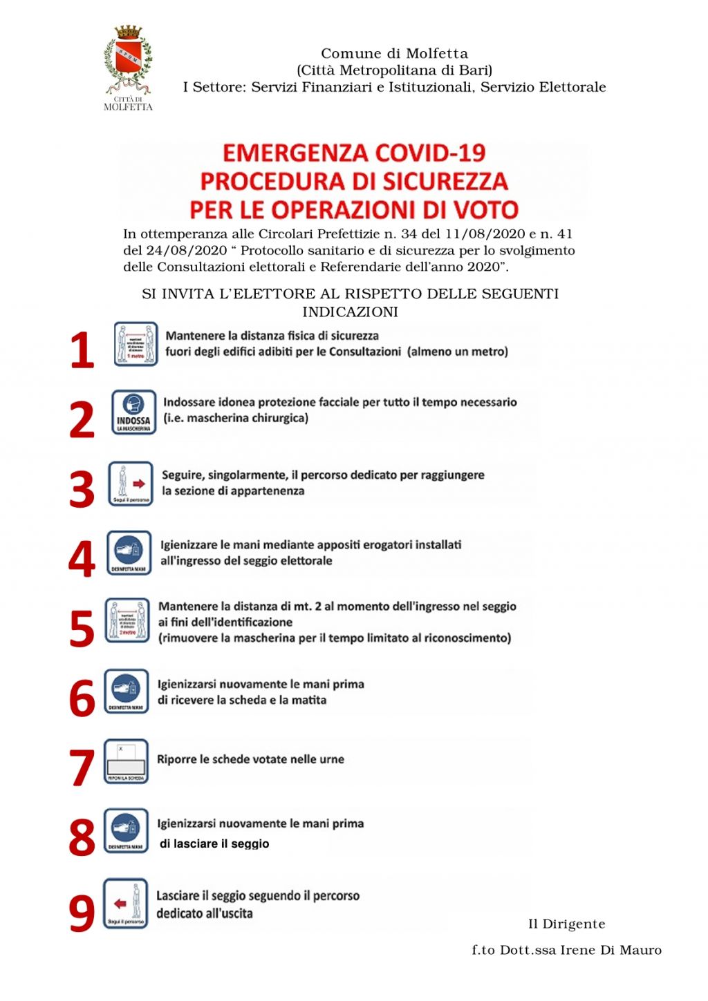 Emergenza covid-19 procedura di sicurezza per le operazioni di voto. Si invita l’elettore al rispetto delle indicazioni in ottemperanza alle circolari prefettizie.