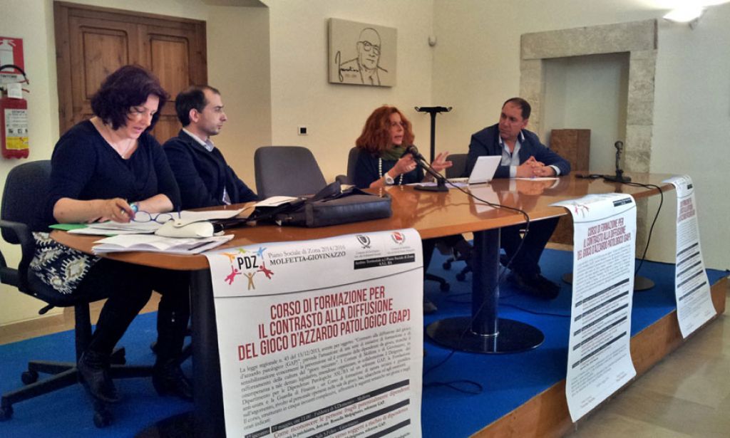 Si terrà il 16 giugno l'ultimo appuntamento del corso di formazione per il contrasto del gioco d'azzardo che i Comuni di Molfetta e Giovinazzo hanno organizzato, nell'ambito del Piano sociale di Zona, in collaborazione con il Dipartimento per le Dipendenze Patologiche ASL/BA, il Centro per il Gioco d'Azzardo Patologico, la Fondazione anti-usura e la Guardia di Finanza.Alle ore 11 nella Sala S.Felice-Giovinazzo l'avv. Attilio Simeone presenterà "L'esperienza della Fondazione anti-usura".