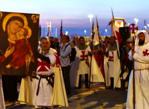 - dalle 20 alle 21.30 su Banchina Seminario, Coso Dante in senso contrario a quello di marcia, Via Sant’Angelo, Corso e Piazza Margherita di Savoia (con giro della piazza), Via Roma, Via Mameli, Via Madonna dei martiri, Viale dei Crociati, Basilica.