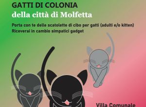 Al momento a Molfetta ci sono oltre 100 colonie feline, seguite da un numero importante di gattare e gattari che, a proprie spese, se ne prendono cura fornendo cibo, sobbarcandosi, senza ottenere alcun contributo, anche delle spese mediche.