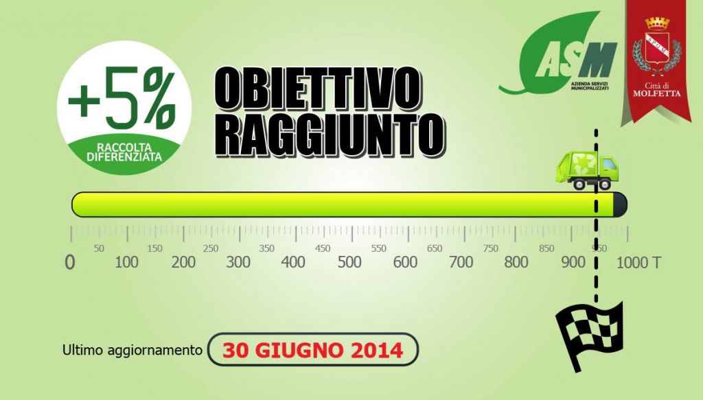 Hanno raggiunto le 974 tonnellate i rifiuti differenziati nel mese di giugno a Molfetta, portando così al 35,1% la percentuale di raccolta differenziata in città. "Centriamo l'obiettivo del +5% necessario per evitare l'ecotassa regionale. Siamo particolarmente soddisfatti perché dopo anni finalmente la percentuale di raccolta differenziata in città è tornata a salire. Inoltre questo risultato ci permette di risparmiare i 350.000 euro che avremmo dovuto iscrivere in bilancio sulla tassa rifiuti". Così il sindaco di Molfetta Paola Natalicchio commenta il dato trasmesso dall'Asm che sarà comunicato alla Regione Puglia.