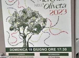 Per motivi organizzativi si terrà domenica 18 giugno, a partire dalle 17.30, (non domenica 11 giugno) l’edizione 2023 della manifestazione “Merenda nell’Oliveta, un’esperienza tutta da vivere nel parco naturale di Lama Martina.