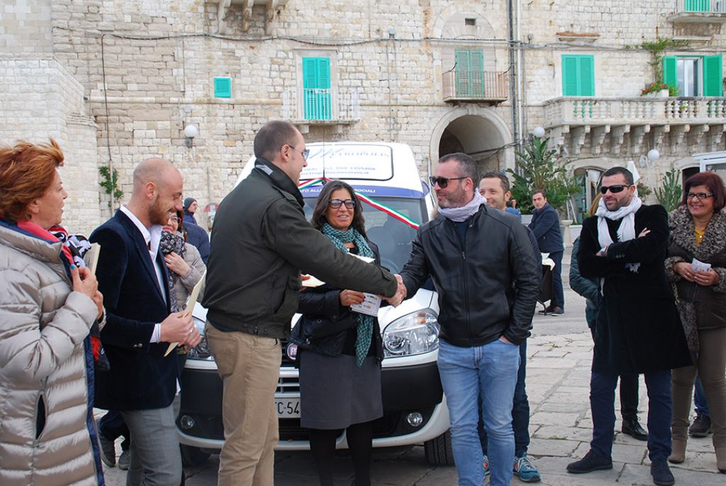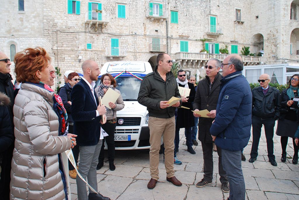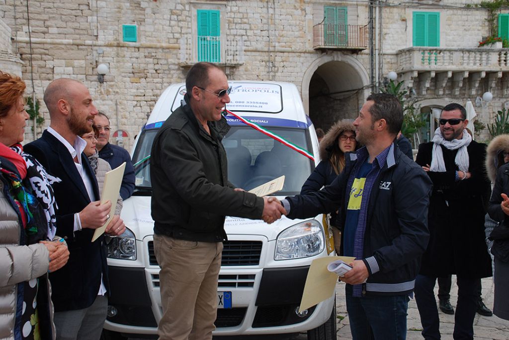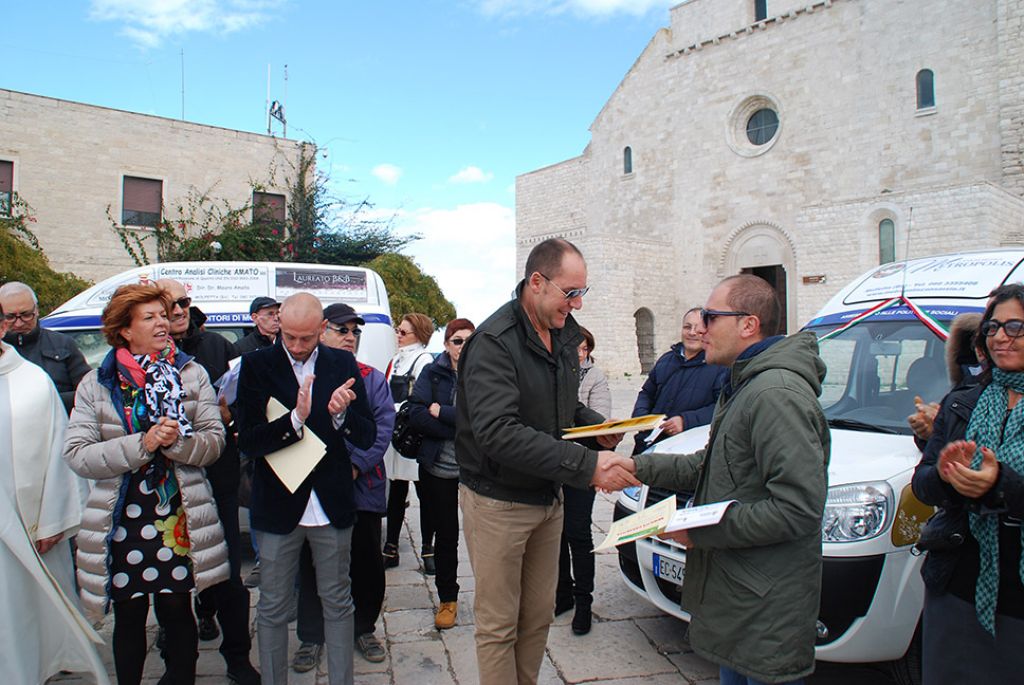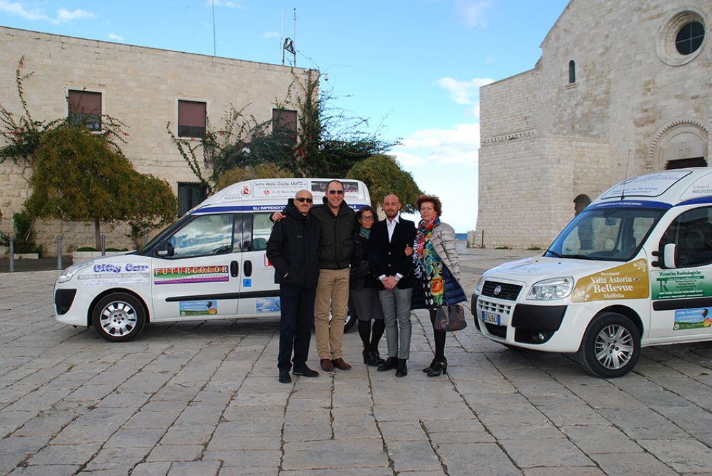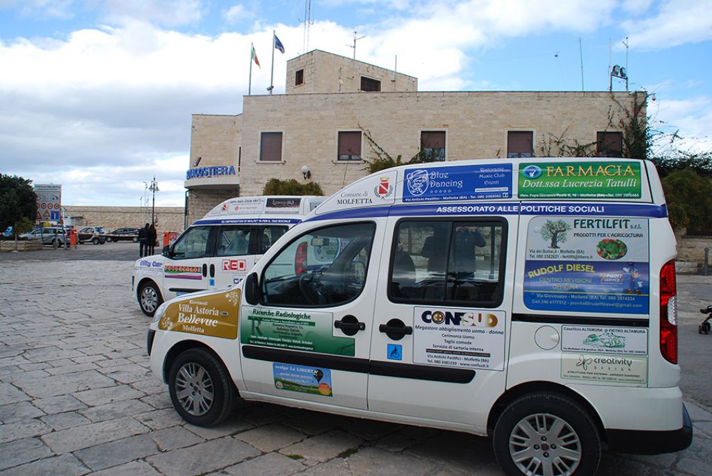 Due nuovi mezzi per il trasporto dei diversamente abili a disposizione del Comune di Molfetta grazie all'adesione di 53 aziende della città al progetto Mobilità Garantita della PMG Italia SpA."Voglio ringraziare la PMG e tutti gli imprenditori che hanno aderito alla campagna di sponsorizzazioni. Un esempio virtuoso di collaborazione tra pubblico e privato per il bene della comunità cittadina e delle persone che più ne hanno bisogno. In un momento di difficoltà per l'economia quello dei nostri imprenditori, piccoli e grandi presenti, è un gesto nobile e significativo", ha spiegato il vicesindaco e assessore al welfare, Bepi Maralfa, nel corso della cerimonia di consegna che si è svolta ieri mattina in Piazza Duomo con i responsabili della PMG Italia, gli imprenditori che hanno ritirato gli attestati e una delegazione di utenti del centro disabili.