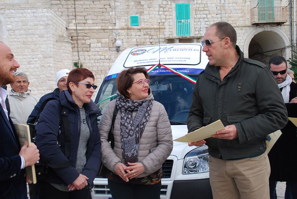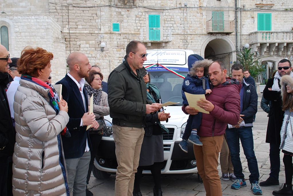 "A fine gennaio due mezzi per il trasporto dei cittadini diversamente abili furono rubati - ricorda l'assessore - Un gesto vile al quale abbiamo rimediato noleggiando il mezzo a disposizione del Centro polivalente, attualmente gestito dalla Gea. Adesso potremo stabilmente mettere a disposizione dei gestori il nuovo mezzo attrezzato con pedana. Mentre l'altro Doblò rientrerà nella dotazione del servizio Auto Amica, per il quale presto ci sarà un avviso pubblico. Si tratta dell'accompagnamento gratuito di anziani e diversamente abili presso strutture sanitarie pubbliche e private per espletare esami clinici, di laboratorio o per eseguire la riabilitazione, anche nei Comuni vicini di Giovinazzo, Bisceglie e Terlizzi".
