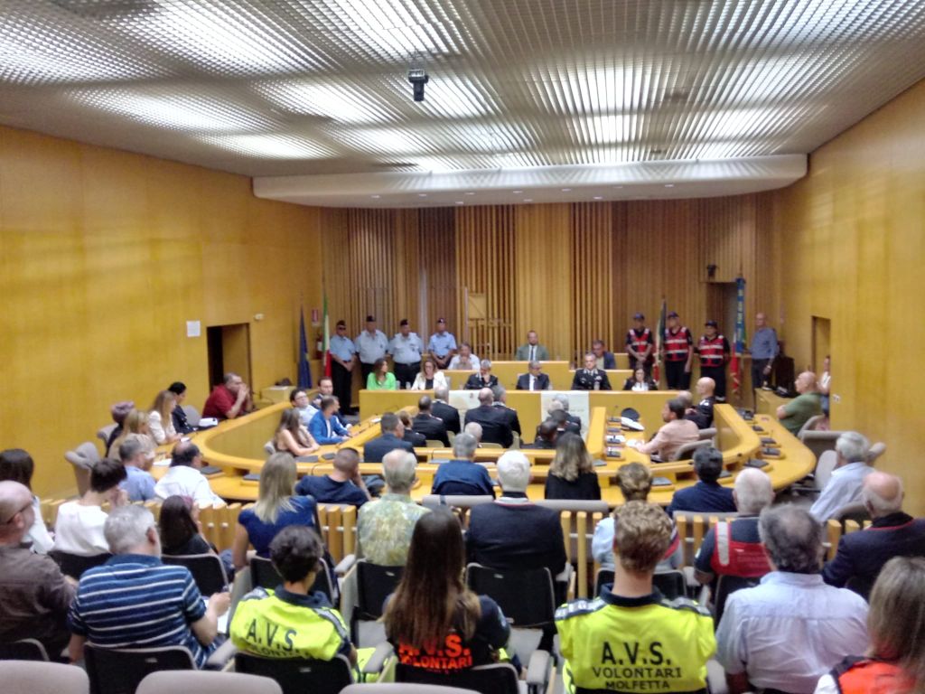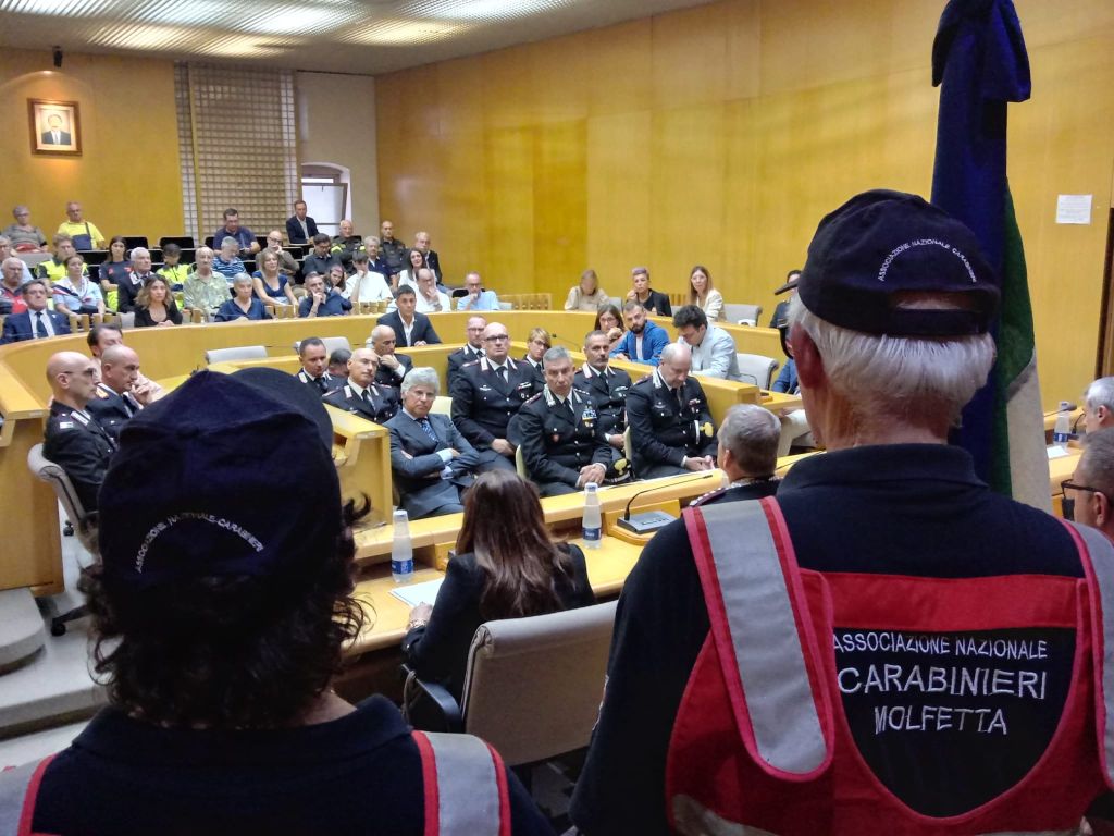 Pubblico numeroso, gli interventi sentiti e partecipi del Presidente del Consiglio comunale, Robert Amato, degli assessori alla sicurezza Caterina Roselli, e alla socialità, Anna Capurso, le parole del colonnello Francesco de Marchis, comandante provinciale dei carabinieri, dei consiglieri comunali, dei rappresentanti delle associazioni e degli organismi presenti tra il pubblico. E poi, a chiudere, gli interventi del Sindaco di Molfetta Tommaso Minervini e del Comandante della Compagnia carabinieri Molfetta, il capitano Francesco Iodice. A fare da cornice le insegne e i rappresentanti dell’Associazione nazionale carabinieri e dell’Associazione Eredi della Storia, il Comandante della Polizia locale, Cosimo Aloia, il Presidente dell’Ordine degli avvocati di Trani, Francesco Logrieco.
