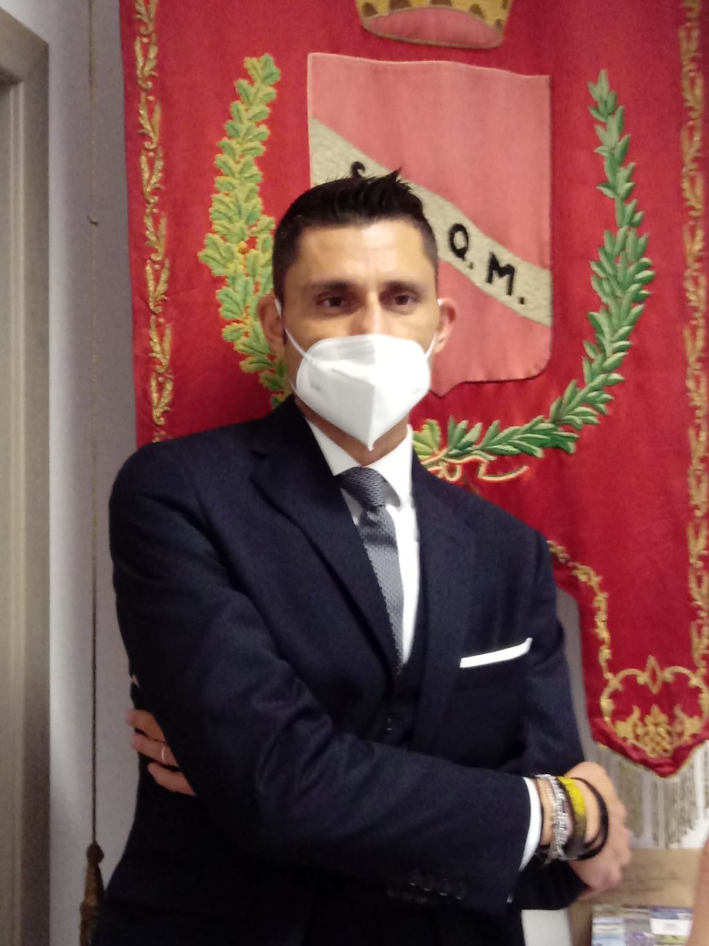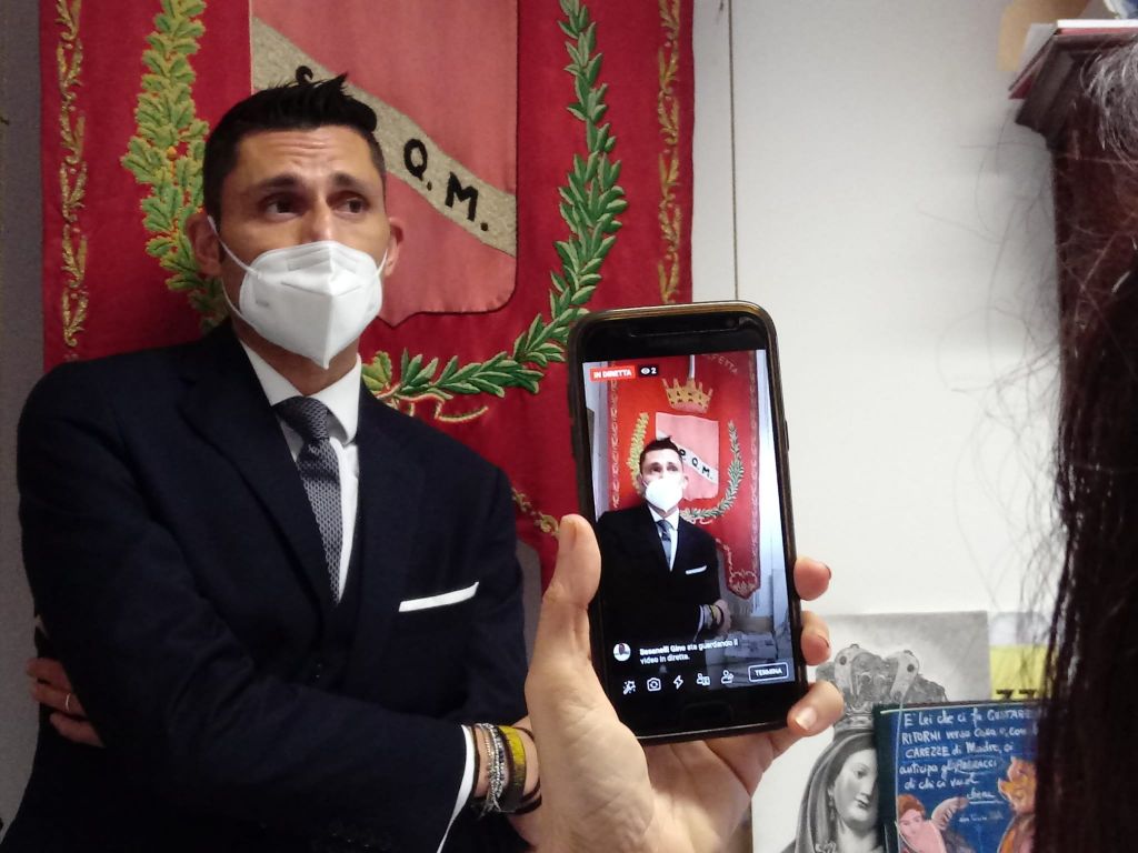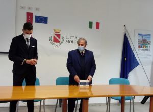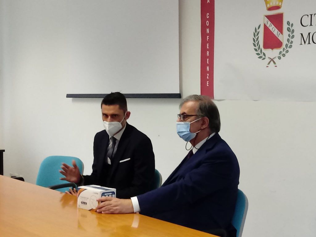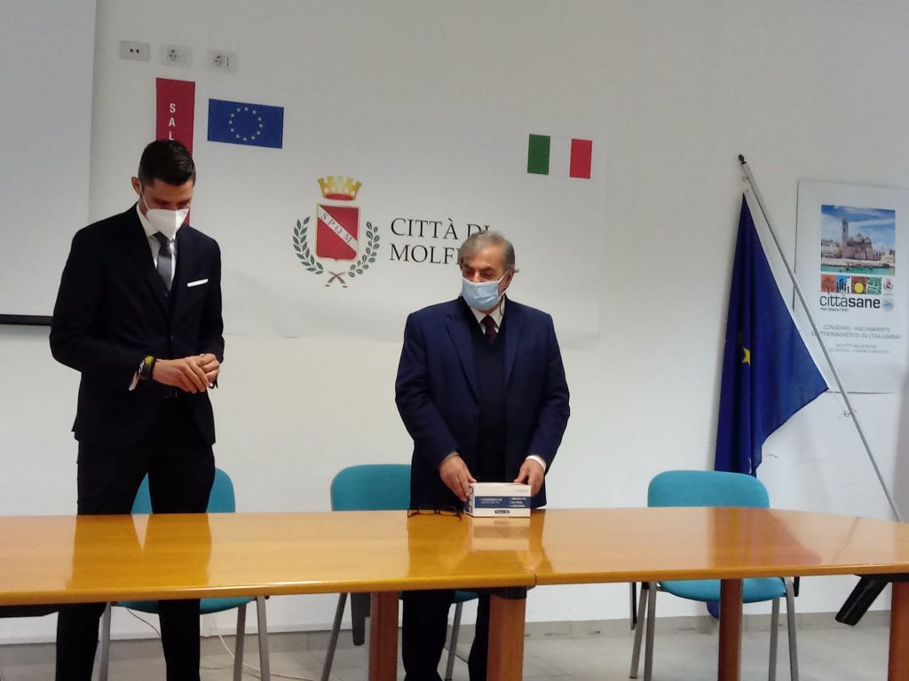 Breve cerimonia in Comune per la consegna di cinquemila mascherine da parte di Eugenio Abbattista per conto di Azimut investimenti.