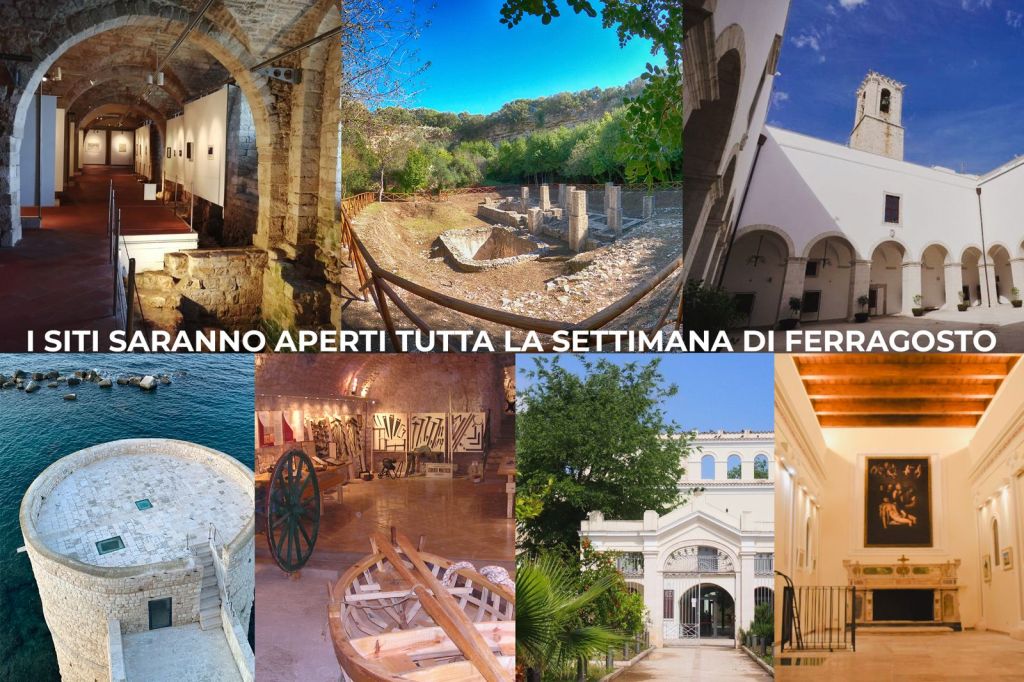Anche nel giorno di Ferragosto, Molfetta sceglie di valorizzare il proprio patrimonio artistico e culturale. L’Amministrazione comunale, in collaborazione con l’Assessorato alla Cultura e al Turismo, ha infatti deciso di tenere aperti al pubblico i principali siti culturali cittadini: il Torrione Passari, la Sala dei Templari, la Chiesa della Morte, il Chiostro della Fabbrica di San Domenico e il Museo del mare nella Fabbrica di San Domenico, Pulo e Museo civico archeologico del Pulo.