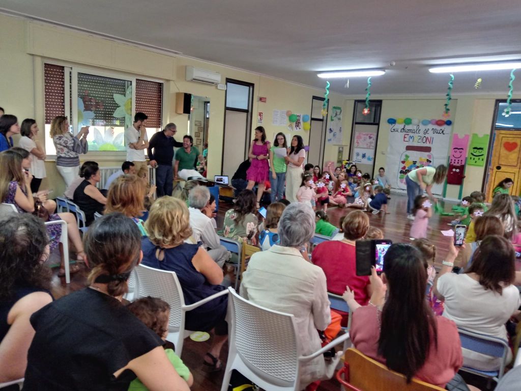 Musica, danze, manine colorate, appiccicose tutte intente ad incollare il cuoricino della propria emozione ad un enorme barattolo disegnato su un grande cartellone. Poi gli interventi, i sorrisi e, per finire un simpatico buffet all’aperto