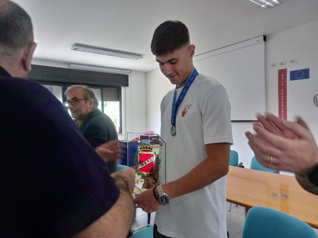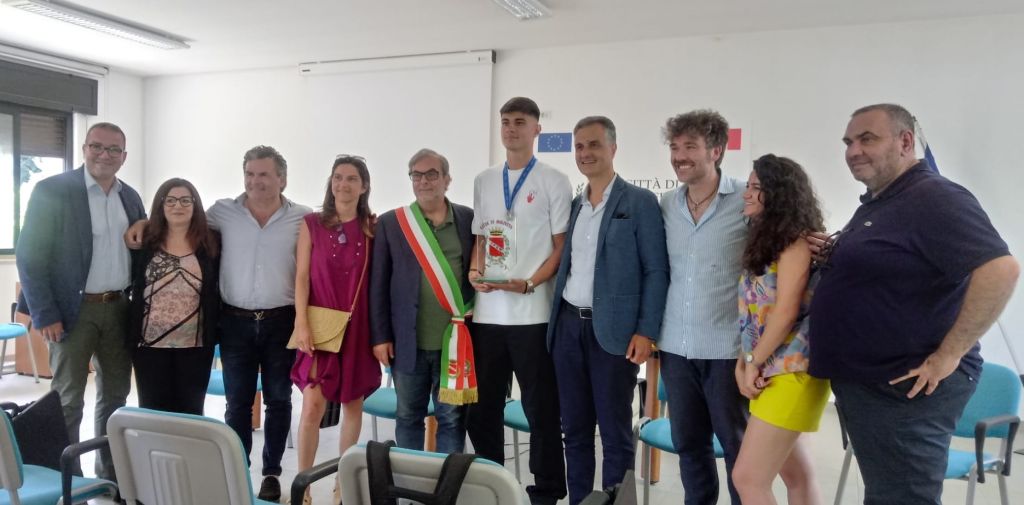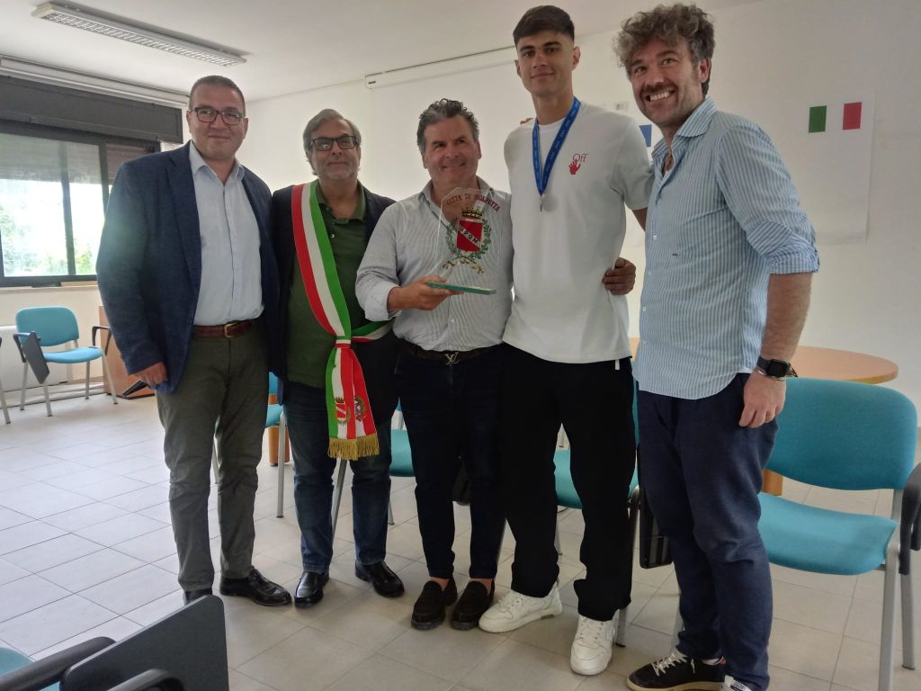 Il giovane atleta, che con il resto della squadra, nei giorni scorsi, ha incontrato, di rientro dall’Argentina, il Presidente Mattarella, è tornato a casa, ed è stato ricevuto dal Sindaco Tommaso Minervini e dalla giunta comunale nella sala conferenze della sede municipale di Via Martiri di Via Fani.