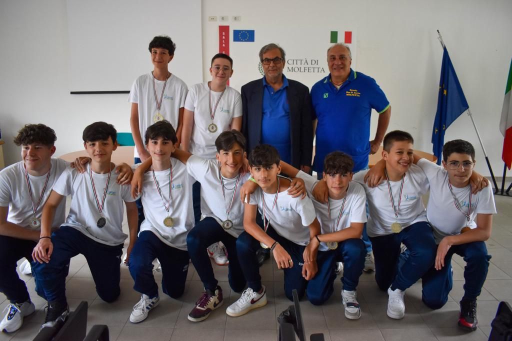 Hanno partecipato ai Giochi Studenteschi Nazionali dopo aver vinto le fasi provinciali e regionali, ottenendo ottimi piazzamenti: sono le squadre maschili di Tennistavolo, classificatasi al 5° posto, e di Pallavolo, classificatasi al 7° posto, del’IC San Domenico Savio che sono state ricevute dal sindaco Tommaso Minervini, che ha voluto premiarli con una medaglia ricordo.