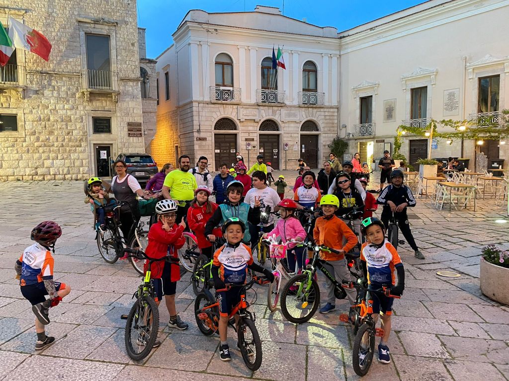 Oltre 30 bambini e altrettanti accompagnatori hanno partecipato al primo “Giovedì in bicicletta, dalla periferia al centro”. Il progetto dell’Asd Akademia ciclismo, patrocinato dall’assessorato all’Ambiente del Comune di Molfetta, insegna ai più piccoli come muoversi in bicicletta in città, rispettando il codice della strada e utilizzando le piste ciclabili.