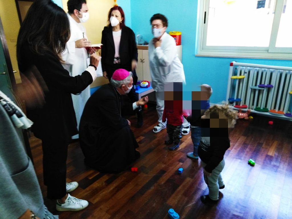 Nel corso della sua visita, al termine di un momento di preghiera, monsignor Cornacchia ha benedetto gli ambienti, i bambini, gli insegnanti e il personale con cui si è trattenuto qualche minuto.