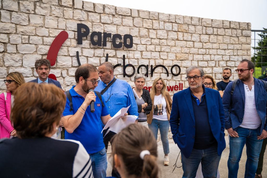 Prima del taglio del nastro gli interventi di Nicola Piergiovanni, assessore a lavori pubblici, che, come gli assessori e i consiglieri comunali presenti, non riesce a contenere l’entusiasmo per quello che sta accadendo, un evento, un momento della storia cittadina. Sono stati ringraziate tutte le maestranze, i tecnici, i dipendenti comunali che hanno collaborato per arrivare all’apertura del parco.