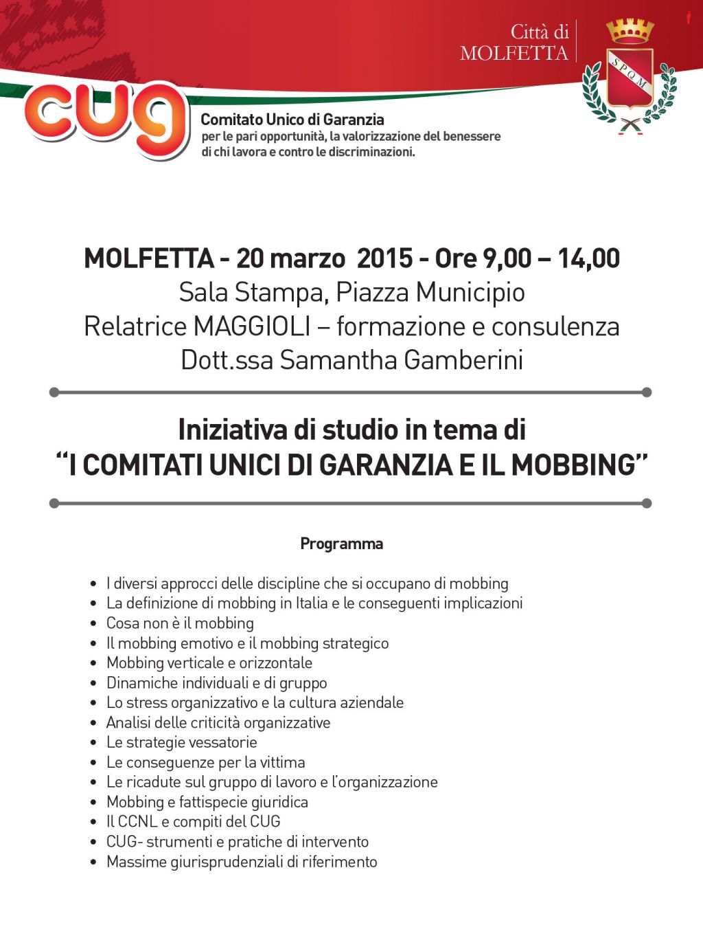 Iniziativa di studio in tema di "I COMITATI UNICI DI GARANZIA E IL MOBBING"
