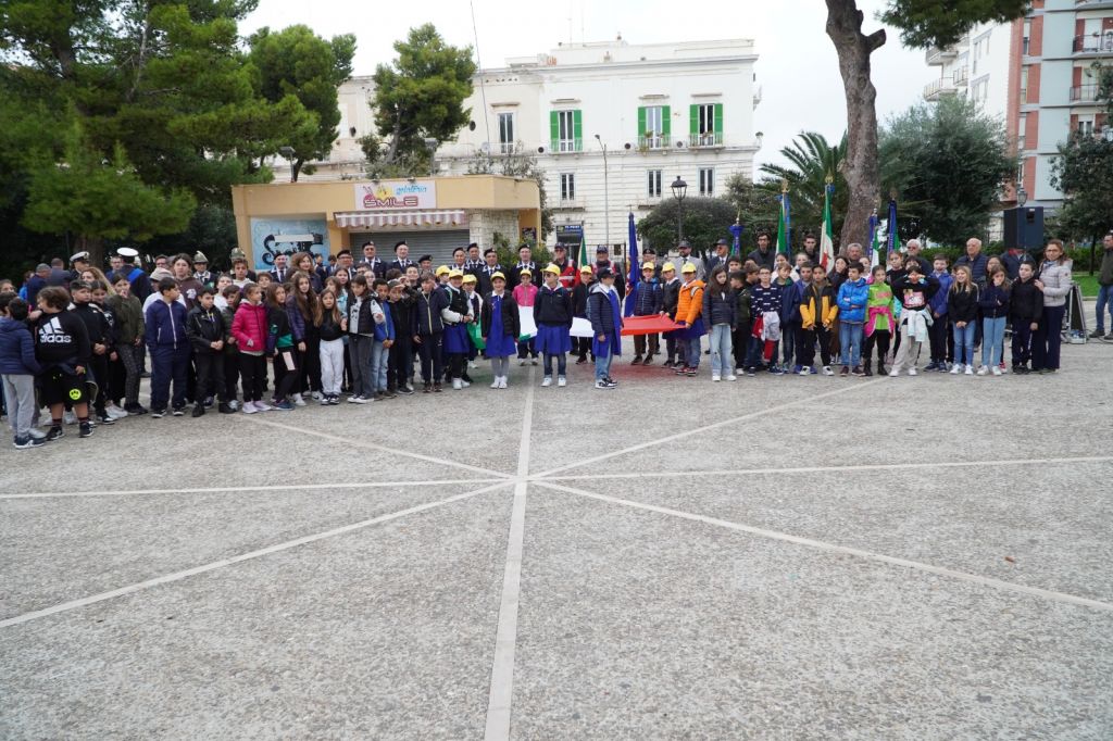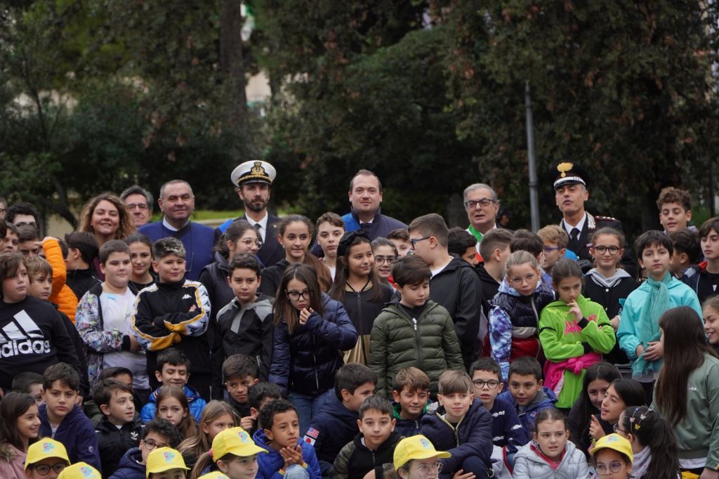 Anche i bambini degli istituti comprensivi, Manzoni-Poli, plesso Cozzoli, San Giovanni Bosco, plesso Santomauro, Battisti-Pascoli, plesso Cesare Battisti, hanno preso parte alla giornata deidcata alla festa dell’Unità nazionale e delle Forze armate. Con i loro giovani volti, la loro freschezza, la loro commozione, si sono uniti alle autorità istituzionali e militari, alle associazioni combattentistichee d’armI, prima partecipando al corteo, poi alla commemorazione ai piedi del monumento ai caduti, in villa comunale.
