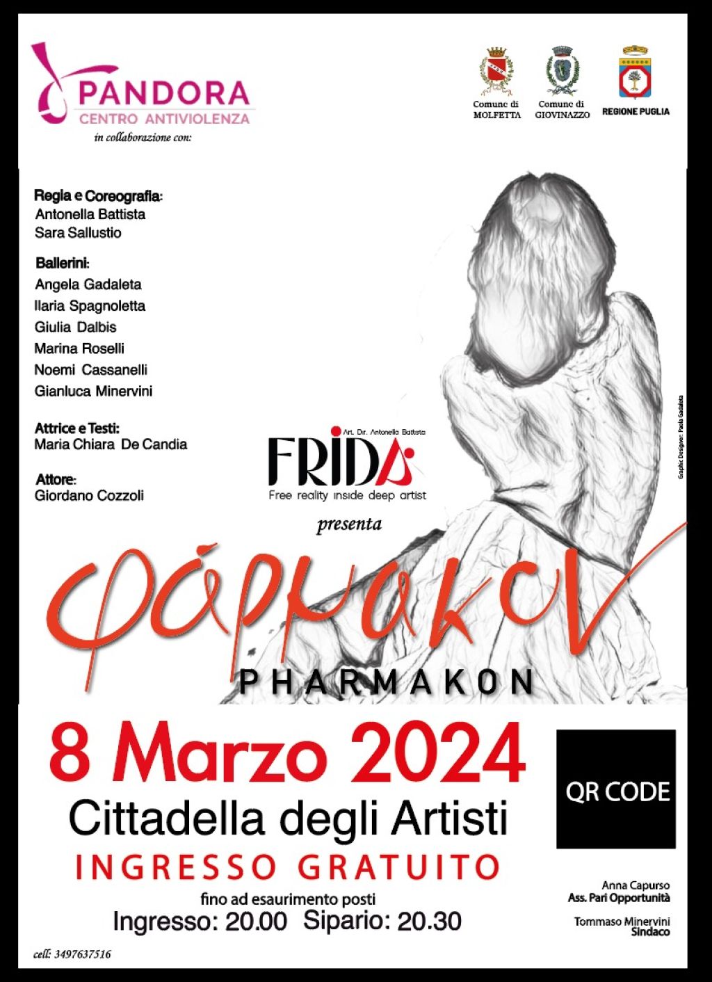 Nella circostanza sarà presentato alla stampa e alla città Pharmacon (φάρμακον), produzione della Compagnia Frida, che andrà in scena l’8 marzo prossimo presso la Cittadella degli artisti.