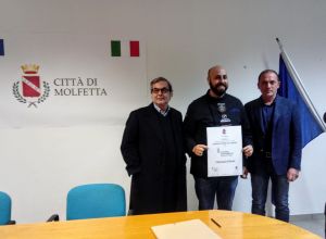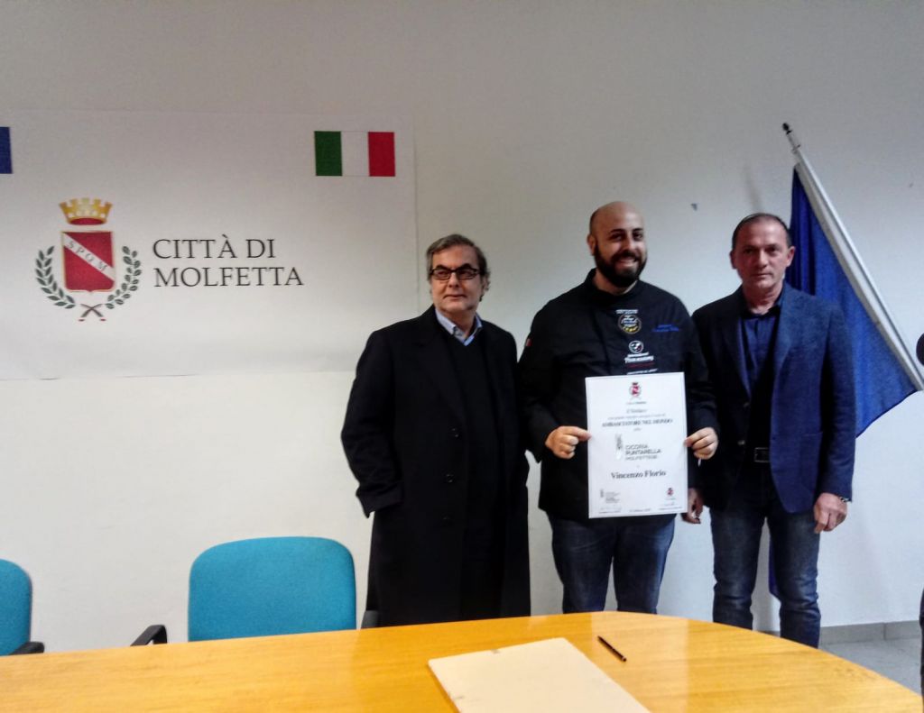 Il riconoscimento gli è stato conferito, nel corso di un incontro pubblico, nella sede municipale di Lama Scotella, dal sindaco, Tommaso Minervini, e dal presidente dell’associazione per la promozione e la valorizzazione della cicoria puntarella molfettese, Mauro De Ruvo. Presenti anche i componenti del direttivo e i soci dell’associazione e il consigliere comunale Giuseppe Balestra.