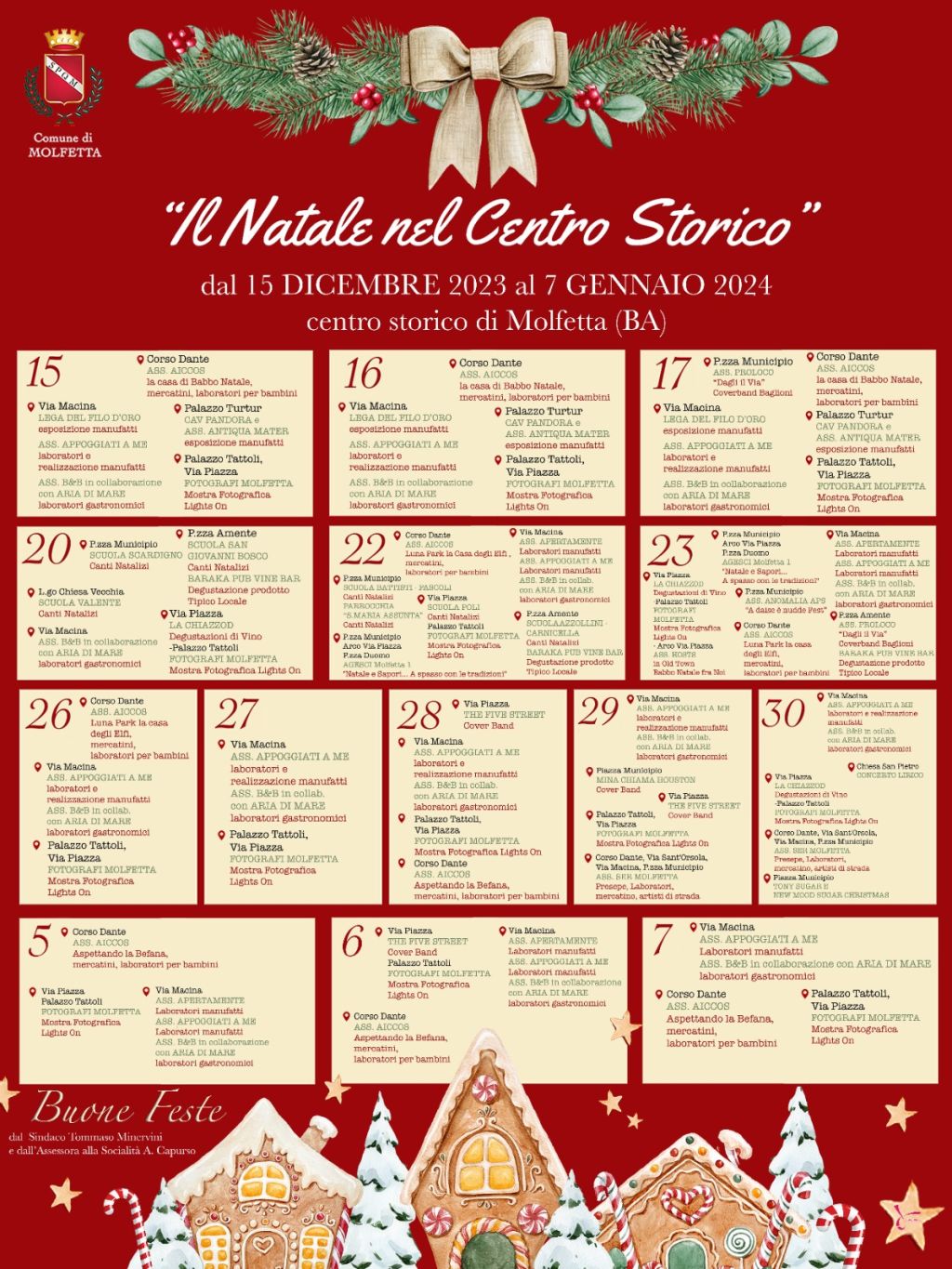 «Ringrazio, anche a nome del Sindaco, Tommaso Minervini, le scuole, le atività ricettive e di ristorazione, le associazioni che hanno voluto contribuire alla stesura del programma e che animeranno le vie, le piazze, i palazzi del centro storico», il commento dell’assessore Anna Capurso.