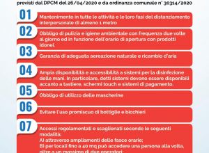 “Il take away – spiega l’assessore al Marketing territoriale Antonio Ancona – deve sempre garantire il rispetto delle distanze sociali di sicurezza. Per questo sarà permesso l’ingresso di una persona alla volta negli esercizi fino a 40 metri quadrati. Dopo l’acquisto il cliente non potrà assolutamente sostare né all’interno né all’esterno del locale o nelle vicinanze, proprio per evitare la possibilità di assembramenti”.