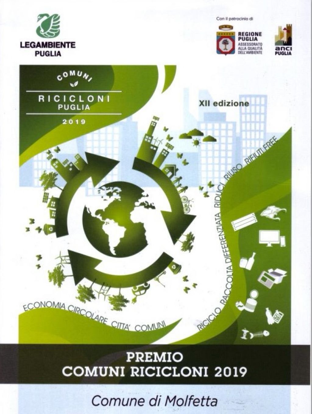C’è anche Molfetta tra i Comuni premiati nel corso della XII edizione di Comuni Ricicloni Puglia organizzata da Legambiente Puglia. Molfetta si è aggiudicata il ‘Premio Comuni Ricicloni 2019’ per aver raggiunto la media percentuale di raccolta differenziata del 70,8% nel 2018