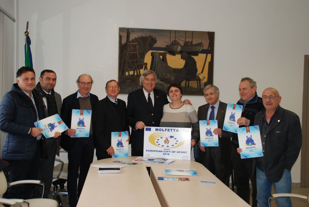 "Abbiamo mostrato il nostro biglietto da visita per accarezzare il sogno di Molfetta Città Europea dello Sport", ha spiegato il sindaco Paola Natalicchio nell'incontro con la stampa. "C'è una Molfetta dello Sport  - ha aggiunto - che ci sta dando soddisfazioni infinite. Non parlo solo del movimento calcistico, legato a numerose società che stanno investendo soprattutto nei vivai giovanili, ma anche di tanti sport considerati 'minori' che in questa città stanno esplodendo e che fanno della nostra realtà un laboratorio di fermenti e talenti. La più grande arriva sicuramente dall'Exprivia Neldiritto Molfetta. La nostra squadra di pallavolo che, dopo averci regalato il sogno della serie A, per la prima volta nella storia, ci sta facendo avvicinare ai vertici della classifica nazionale, sfiorando i play off, con due dei nostri pallavolisti convocati anche nella nazionale azzurra. L'altra soddisfazione è arrivata dai Campionati italiani assoluti di Tennistavolo appena conclusi a Molfetta. Un riconoscimento nazionale, della Federazione e del Coni, a una città che è stata palestra importante di pongisti di livello. Terza enorme soddisfazione riguarda la nostra atletica leggera e la portacolori dell'Olimpia Club, Lucia Pasquale, che ha vinto ad Ancona il titolo di campionessa italiana dei 400 mt durante i Campionati Italiani Individuali Indoor Promesse. Si stanno rilanciando pattinaggio e  hockey, discipline che hanno una tradizione consolidata. E generazioni di bambini e bambine si allenano nelle nostre palestre, facendo grande il movimento della ginnastica artistica e ritmica e delle arti marziali. Fino ai costanti successi nell'ippica di Caterina Minervini.