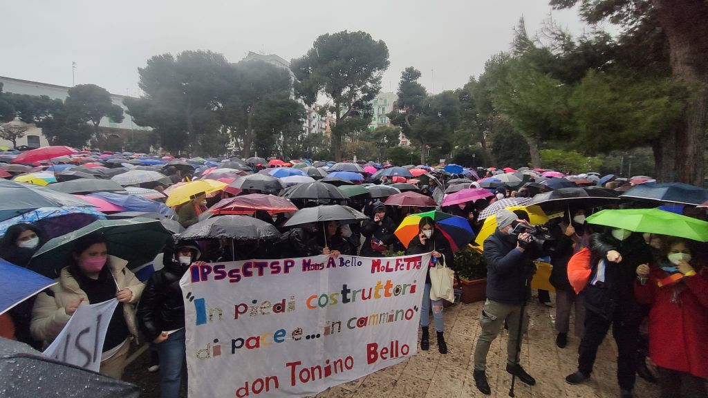 “Molfetta, città della Pace e di Don Tonino – ha concluso il sindaco – ha ringraziato gli studenti che continuano a rappresentare la coscienza profonda della città, manifestando uniti e compatti per dire no all’invasione dell’Ucraina e per ripudiare la cultura della violenza e della guerra. Dobbiamo seguire la storia civile e democratica e l’esempio di Don Tonino che nell’epoca moderna è stato costruttore di pace, frapponendosi alla insulsa guerra nei Balcani. L’Europa deve essere una grande comunità di pace e questa marcia, lo spirito dei ragazzi, le manifestazione in tanti Paesi nel mondo, le tante azioni di solidarietà, indicano che una presa di coscienza collettiva internazionale sulla democrazia può e deve prevalere e fermare la guerra”.