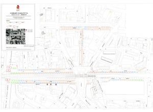 Gli stalli sono stati accorpati per tabella merceologica: beni a basso impatto urbanistico (Mobili, Lampadari, complemento d’arredo); settore alimentare (Legumi, Frutta secca, dolciumi, formaggi e salumi, ittico); settore non alimentare (Abbigliamento, calzature, intimo, beni alla persona, profumi e cosmetici, articoli per la casa); frutta e verdura (Commercianti locali).