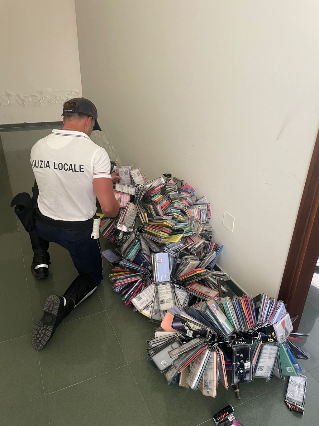 Oltre 1.500 cover per smartphone sono state sequestrate dalla Polizia locale, nel corso di un servizio di controllo annonario e amministrativo del mercato settimanale, da una bancarella.