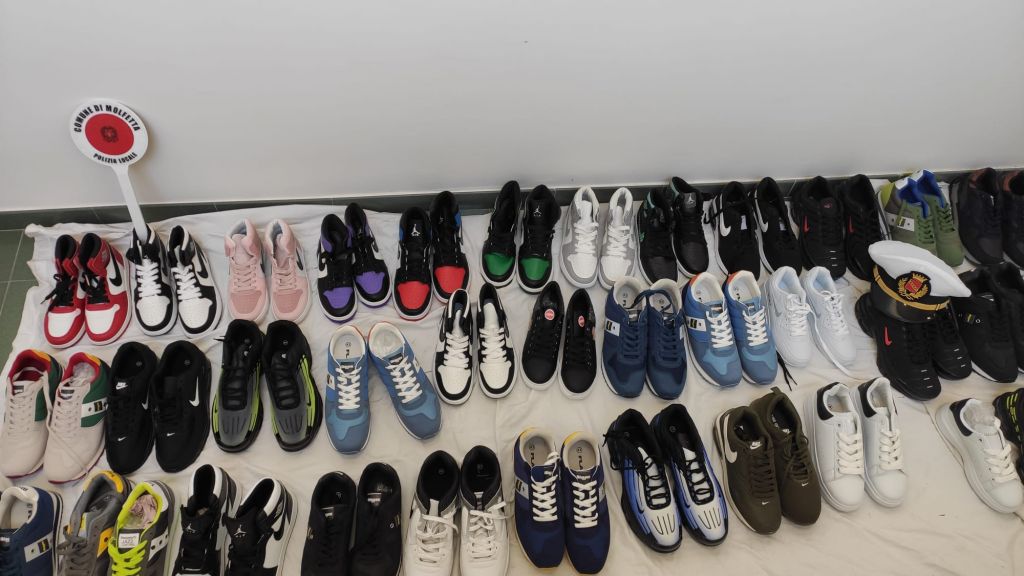 47 paia di scarpe, 7 giubbini, 6 felpe e 2 borse contraffatte sono stati sequestrati dalla Polizia locale, nel corso di un servizio di controllo annonario e amministrativo del mercato settimanale, da una bancarella.