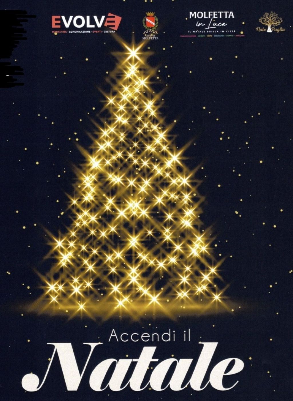 Molfetta avrà un albero di Natale gigantesco, alto 11 metri. L'accensione dell’albero di Natale, posizionato di fronte alla Cattedrale di Molfetta, prevista per la serata del 7 dicembre, causa condizioni meteo avverse, è stata rinviata alle 17.30 di domani, 8 dicembre. Per l’occasione ci sarà un grande show con musica orchestrale, giochi di luce, animazione, sand-art ed un led-wall