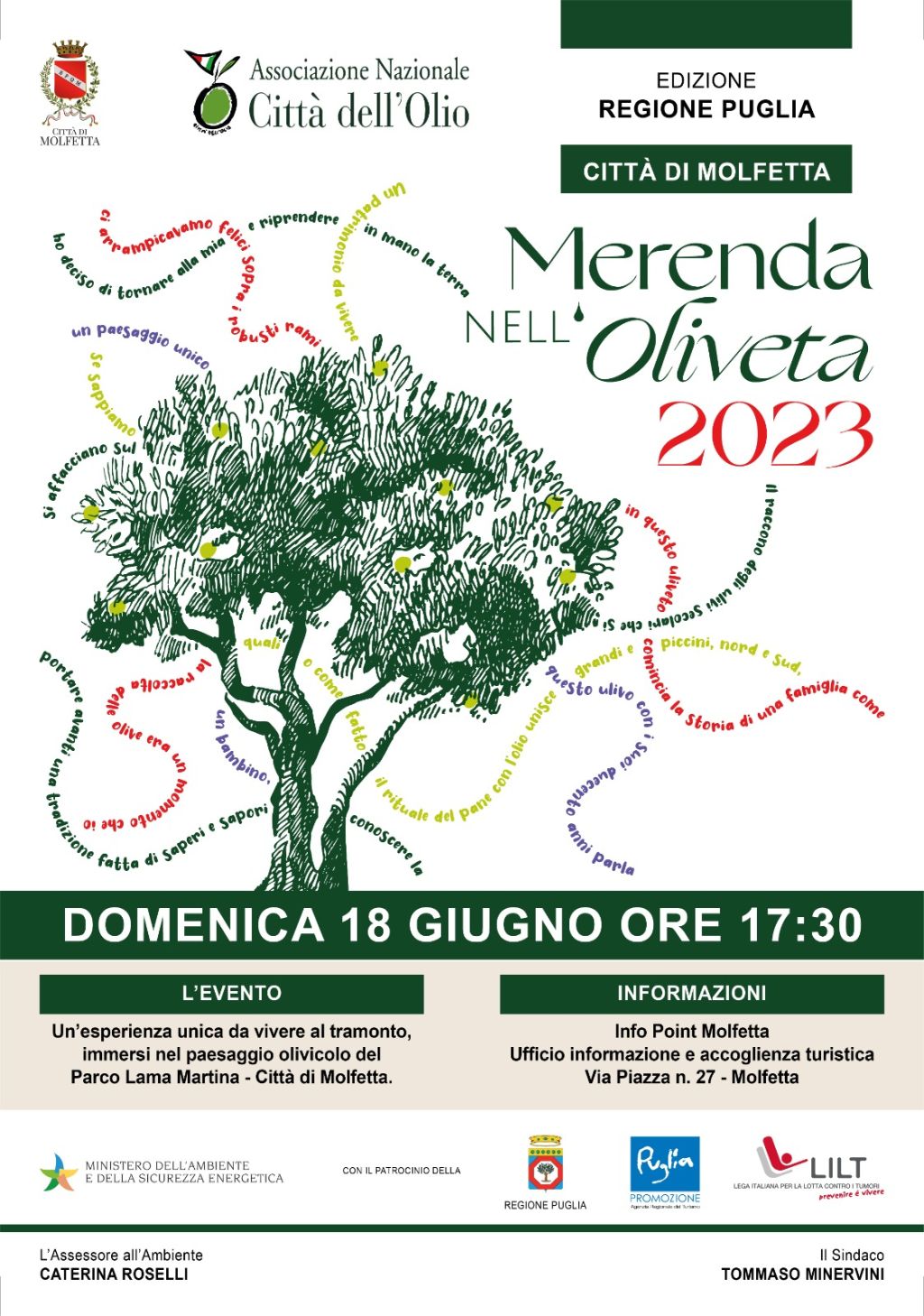 In programma ci sono laboratori per bambini, degustazioni, visite guidate, una caccia al tesoro, momenti di riflessione e condivisione. Domenica 18 giugno, a Lama Martina, a partire dalle 17.30, torna Merenda nell’Oliveta, iniziativa aperta a grandi e piccini, realizzata in collaborazione con l’associazione Città dell’Olio.